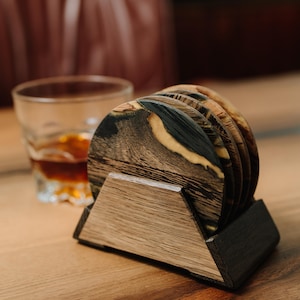 Yellow tint and flower resin coasters (SET OF 5) with resin holder included